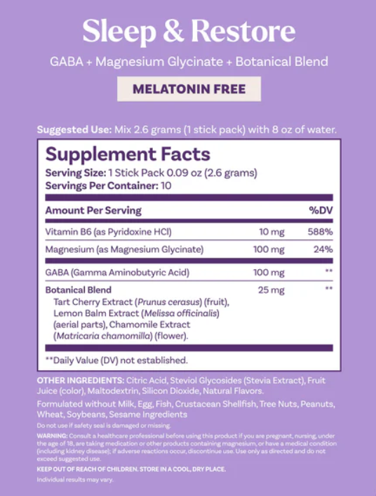 Now, the Natrol Sleep Restore blend also contains GABA, suggesting that the supplement may further decrease the stimulation of nerve cells in your brain, thereby reducing stress and aiding sleep.