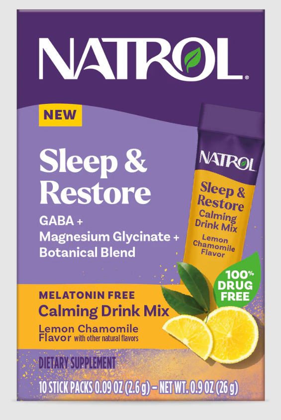 The Natrol brand claims to provide the #1 drug-free sleep aid, providing a variety of non-habit-forming supplements, such as melatonin and melatonin-free gummies, tablets, and capsules. In 2025, Natrol released the Sleep and Restore magnesium glycinate drink mixes, which purportedly offer the ultimate restorative sleep.
