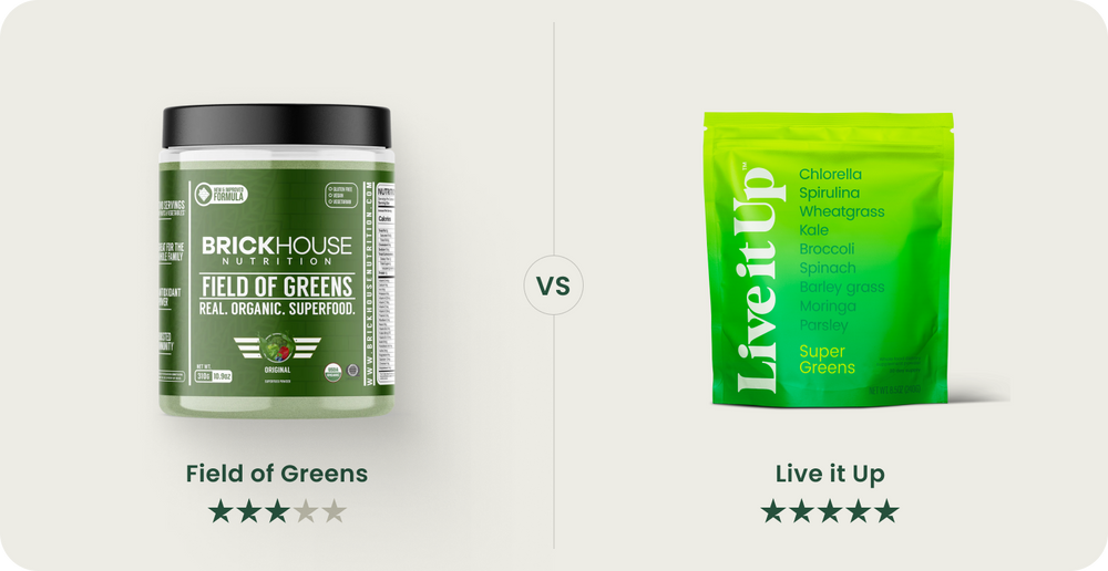 I recently did a deep dive into the Field of Greens powder by BrickHouse Nutrition. In this article, Iâll compare it directly to Live it Up Super Greens and explain why I think Live it Up offers the better product. Iâll go through the top reasons I prefer Live it Up, the ingredients and nutrient content of each product, their health claims, taste, costs, and more.