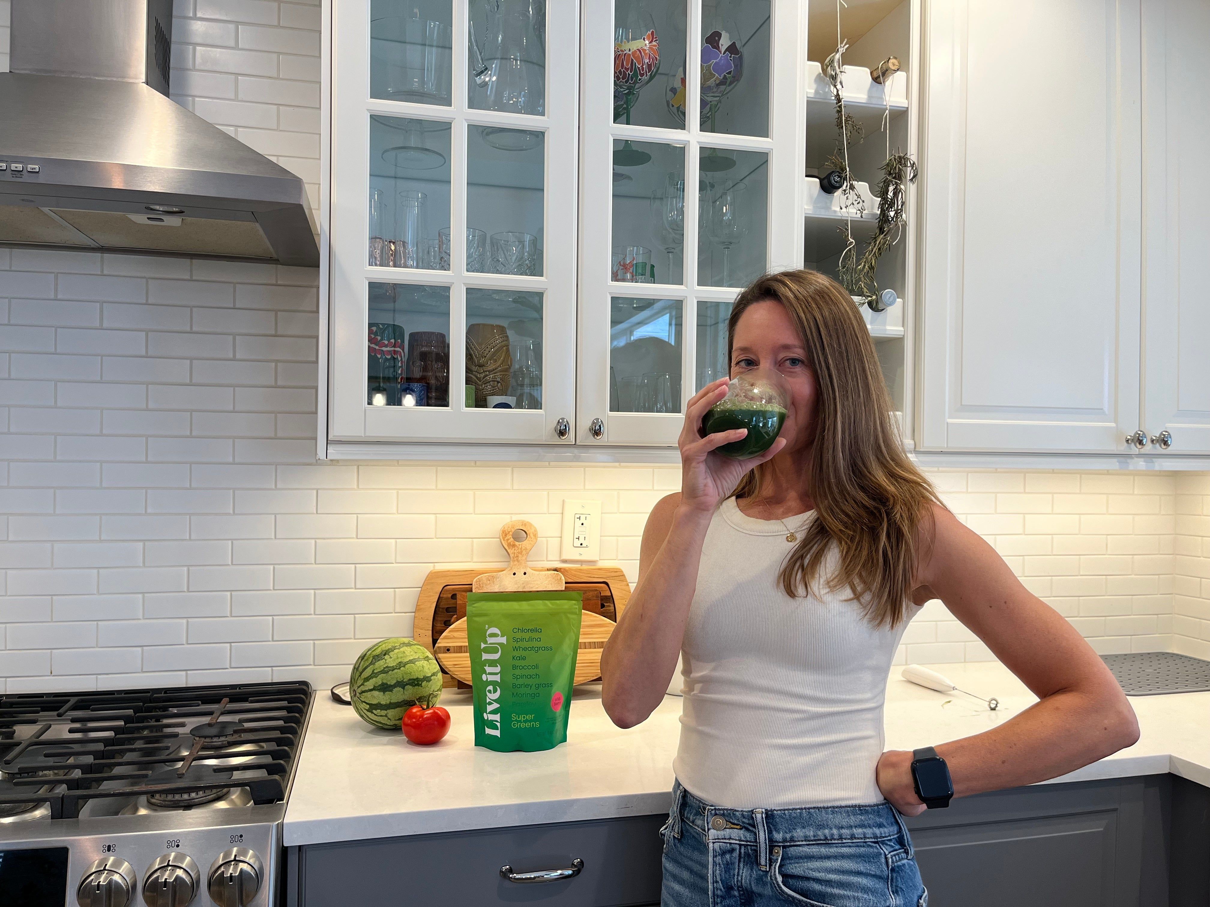 I feel more comfortable recommending Live it Up Super Greens powder to my clients. It's made from organic vegetables, has no fillers, is caffeine-free, and provides a balanced dosage of essential vitamins and minerals.