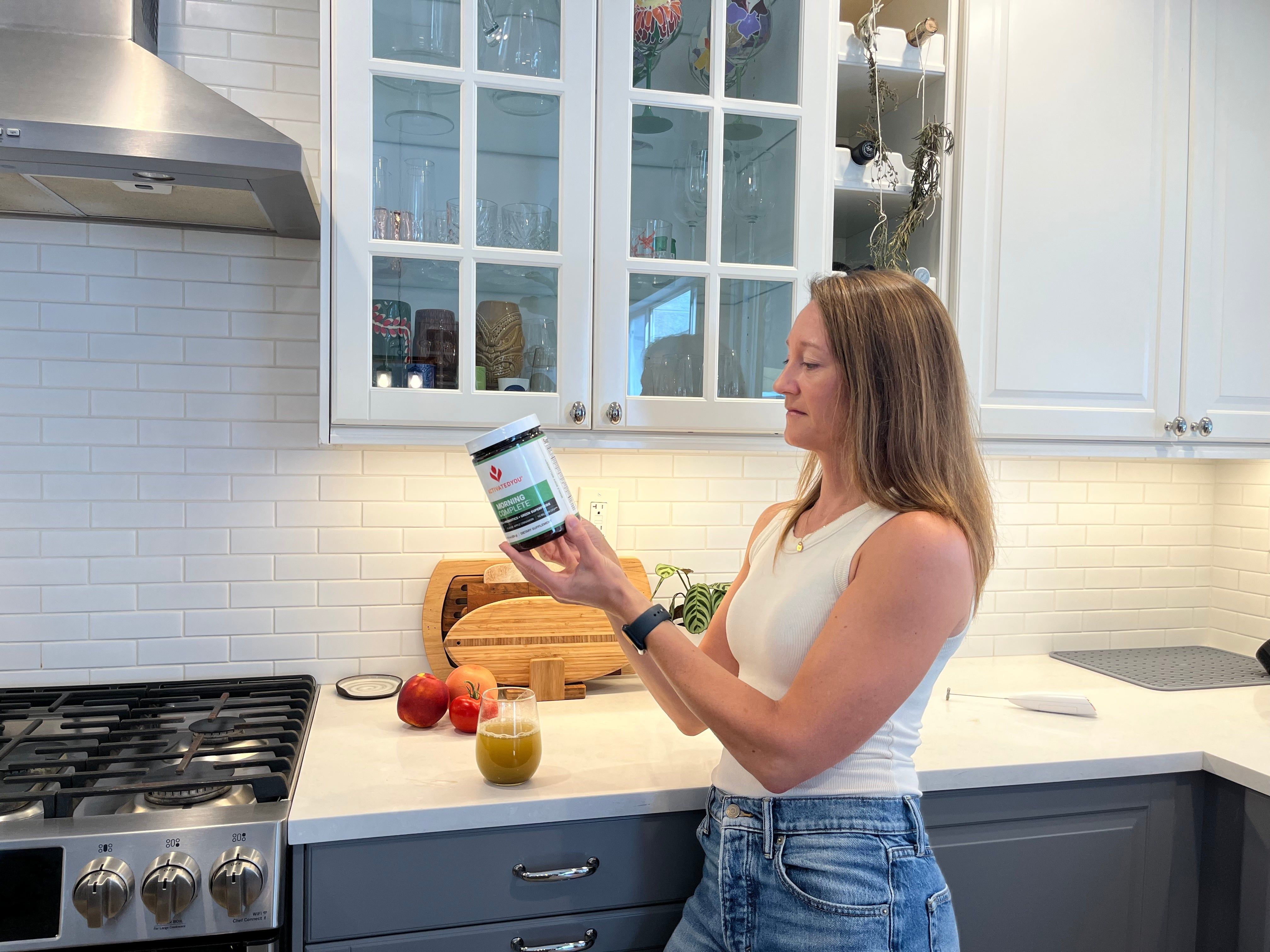 Morning Complete is a daily greens powder manufactured by ActivatedYou, a wellness and supplement company founded by Maggie Q., an actor and health advocate, with insight and guidance from gut-health expert, Dr. Frank Lipman.