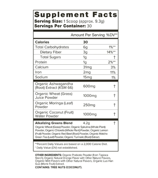 The Organifi Supplement Facts only provide % DVs for calcium, iron, and sodium, so it's unclear how potent the blend is and how much it will contribute to your overall health.