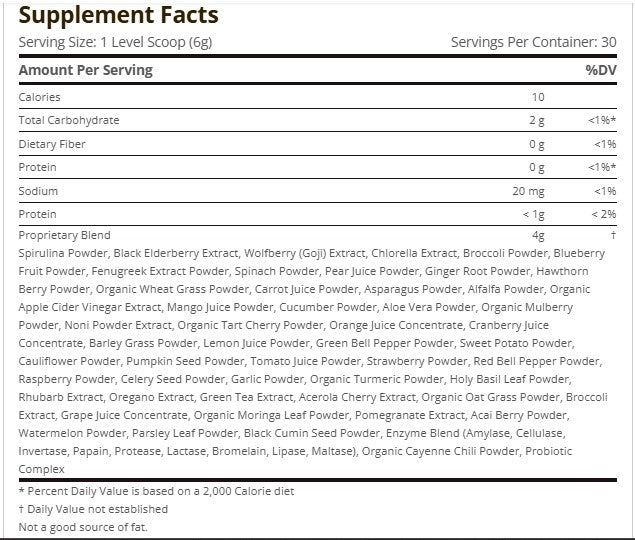 Texas SuperFood offers limited nutritional information about its Original Powder, which leaves us guessing as to its nutrient content. While there is a helpful ingredients directory on their website, the actual quantities are omitted. What we do know is that it offers:
