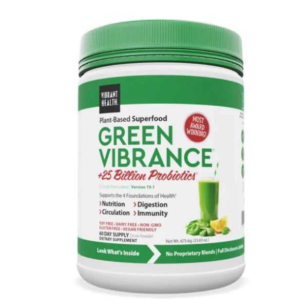Green Vibrance also includes probiotics to help support healthy digestion and plant enzymes, which can aid in the absorption of nutrients into the body.