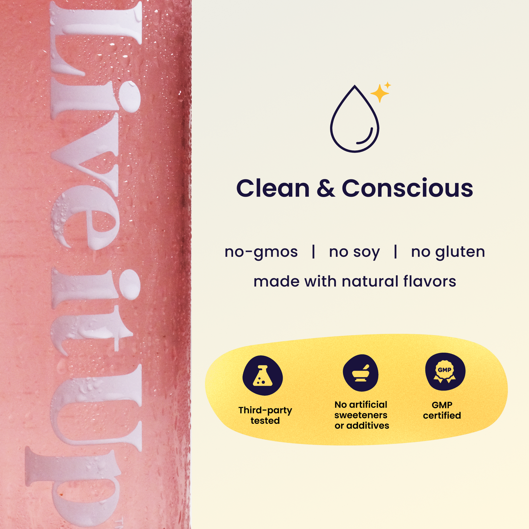 Mix 1 scoop of Live It Up Vital Minerals with about 12–16 oz of water for the best balance of flavor and absorption. Using more water will make the flavor lighter, while using less will make it stronger. The electrolyte benefits stay the same either way.